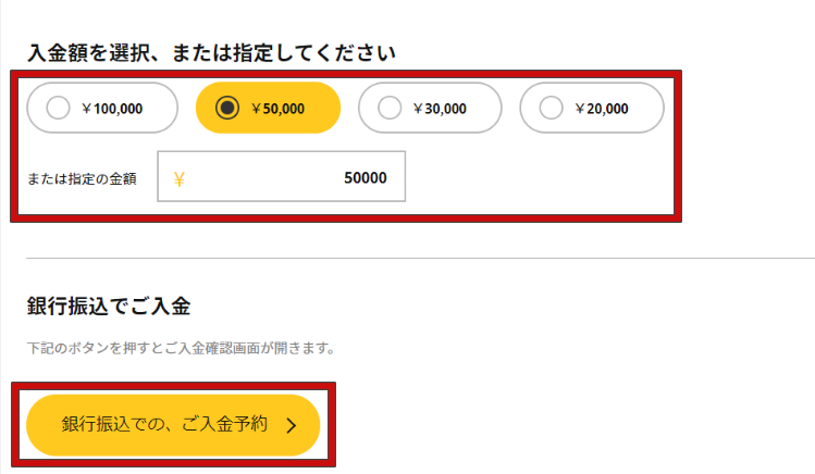 最後に「銀行振込での、ご入金予約」ボタンをクリック