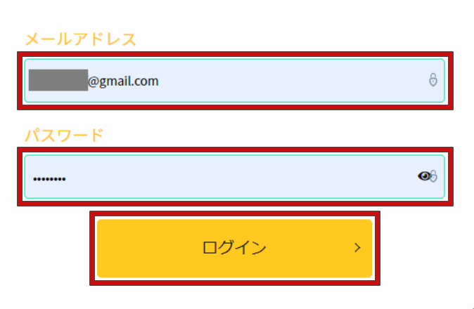 登録メールアドレスとパスワードを記入し「ログイン」をクリック