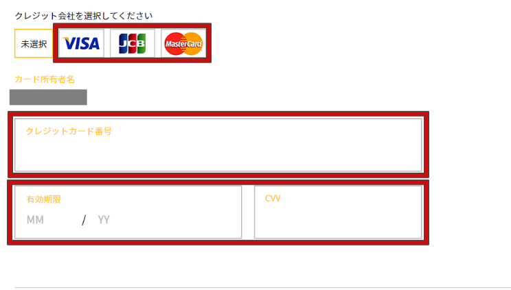 - カードの裏面に記載してある3ケタのCVV番号を記入