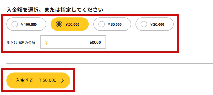 最後に「入金する」ボタンをクリックすればクレジットカード/デビットカードによる入金手続きは完了です。